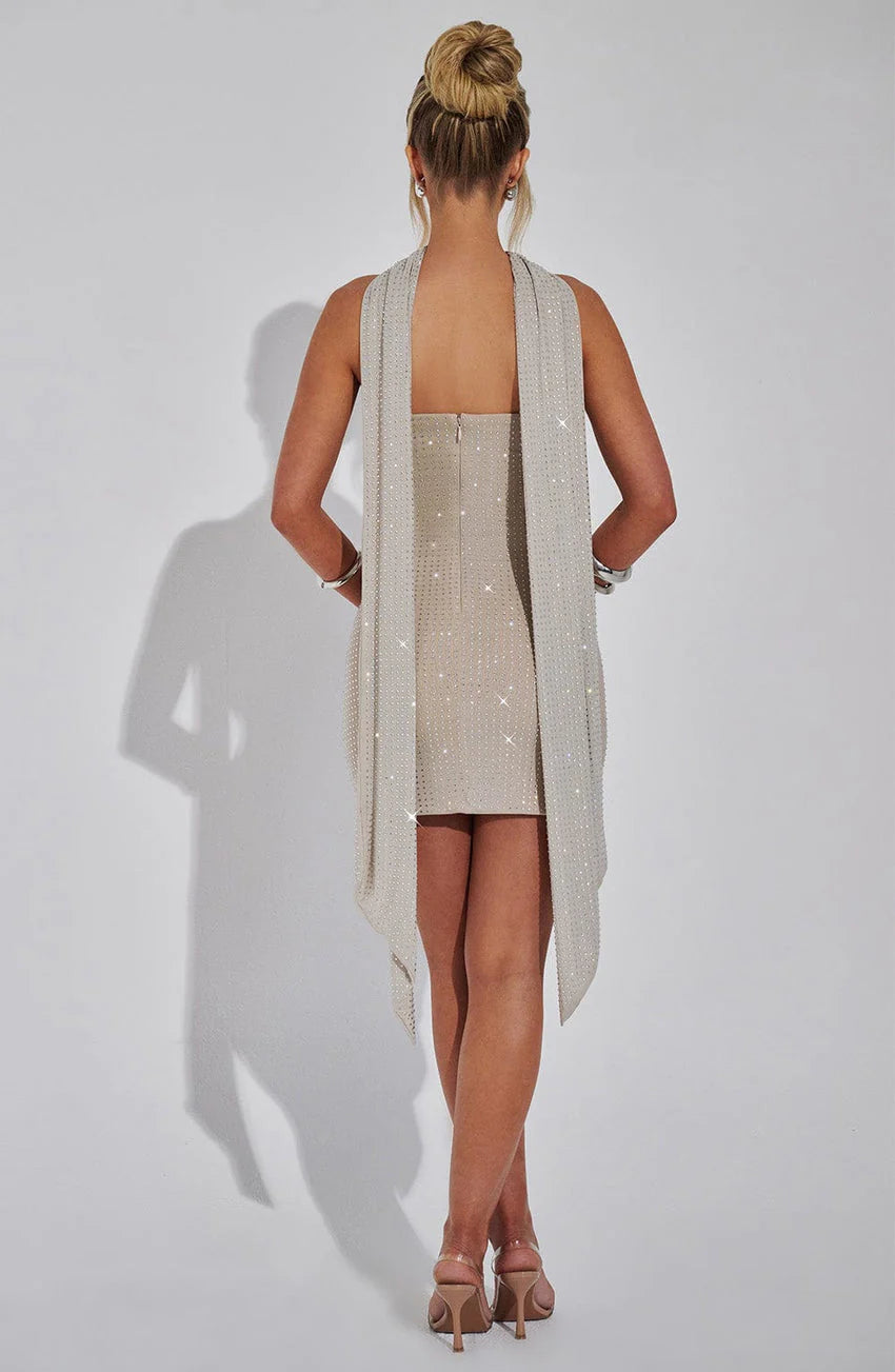 A sparkling mini made for party season, say hello to Ginni. This strapless style features all-over sparkly hotfix rhinestone embellishment so you'll shine all night. With a body-hugging fit, style with the Ginni scarf for your next dinner reservation.